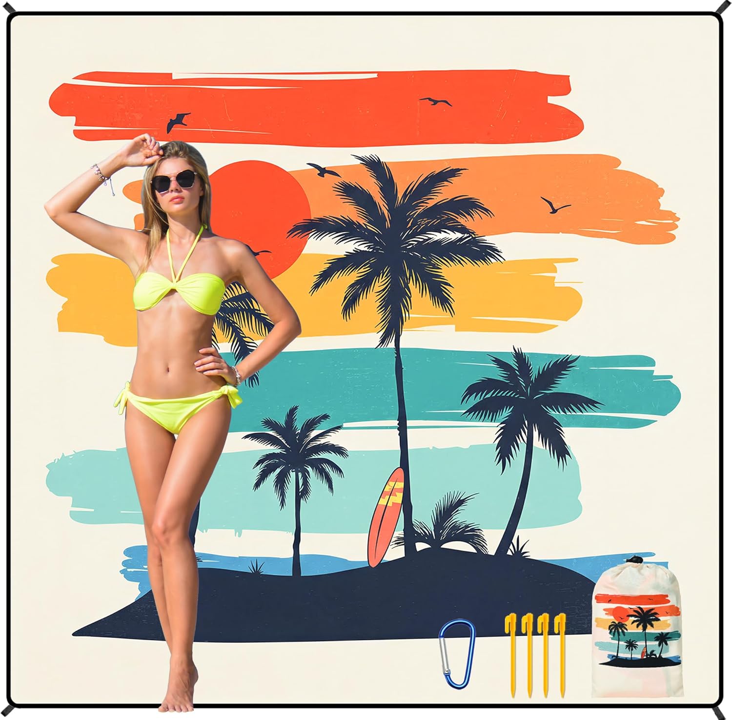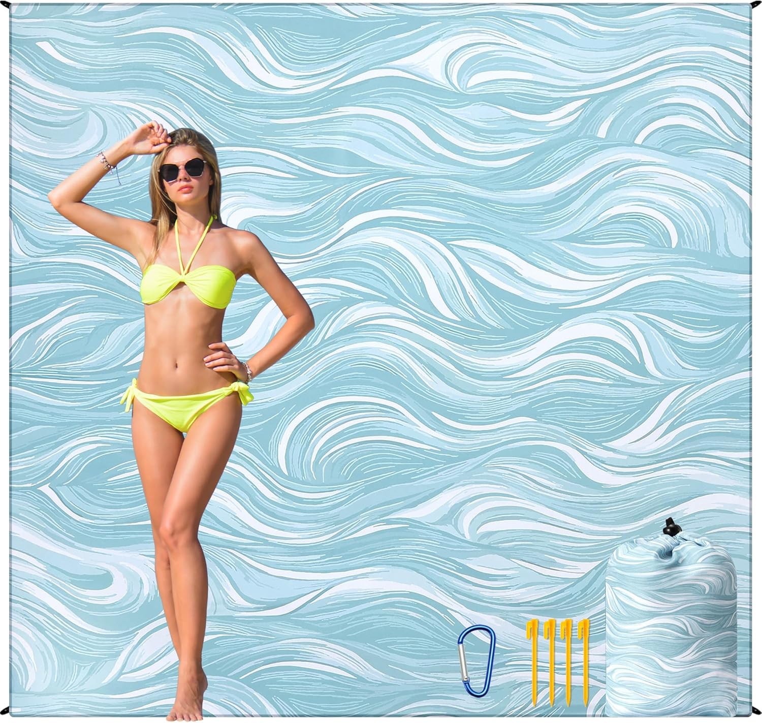 • 🌊MULTIFUNCTIONAL BEACH ACCESSORIES-It can be used as a beach blanket while traveling, a toy mat for children at home, a picnic blanket, even ground cover, etc. Our sand-free beach blanket designed with portability is perfect for all occasions.Leave it in your trunk after a quick-wipe clean instead of cleaning and always have it handy. Tips: It is allowed to be machine washed but with no bleach or iron.