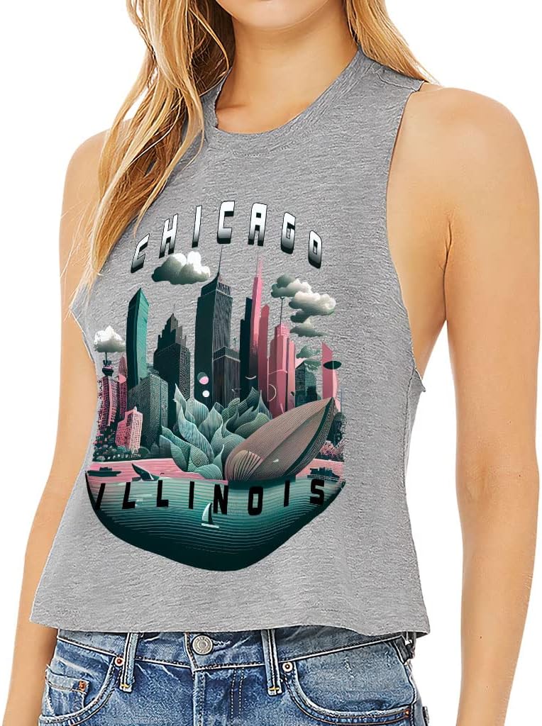 Cute and flattering Chicago Illinois Racerback Cropped Tank is suitable for most indoor or outdoor activities, such as gym, yoga, running, hiking, beach or relaxing around the house. Pair Graphic Women's Tank with your favorite sports bras, especially strappy ones, and high-waisted leggings, then you will enjoy cool and comfortable exercise throughout the summer.