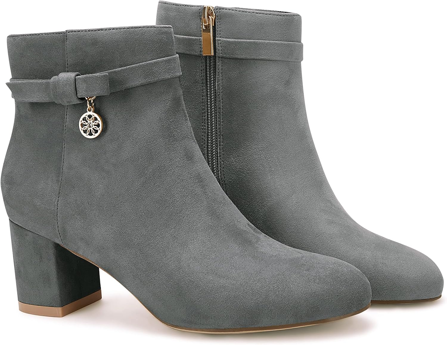 • Features- Our sophisticated ankle-cuff boots feature a sturdy mid-block heel, slip-resistant sole, round toe, solid color, side zippers, finished with an archival strap, and a mini crystal hangtag. It's a timeless classy look.