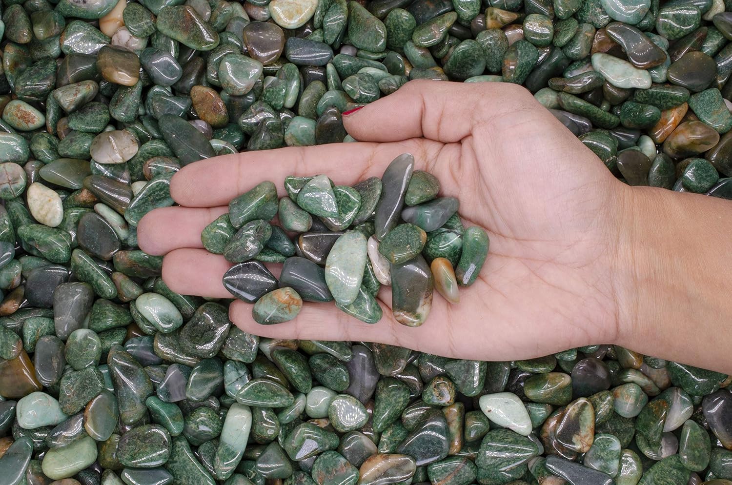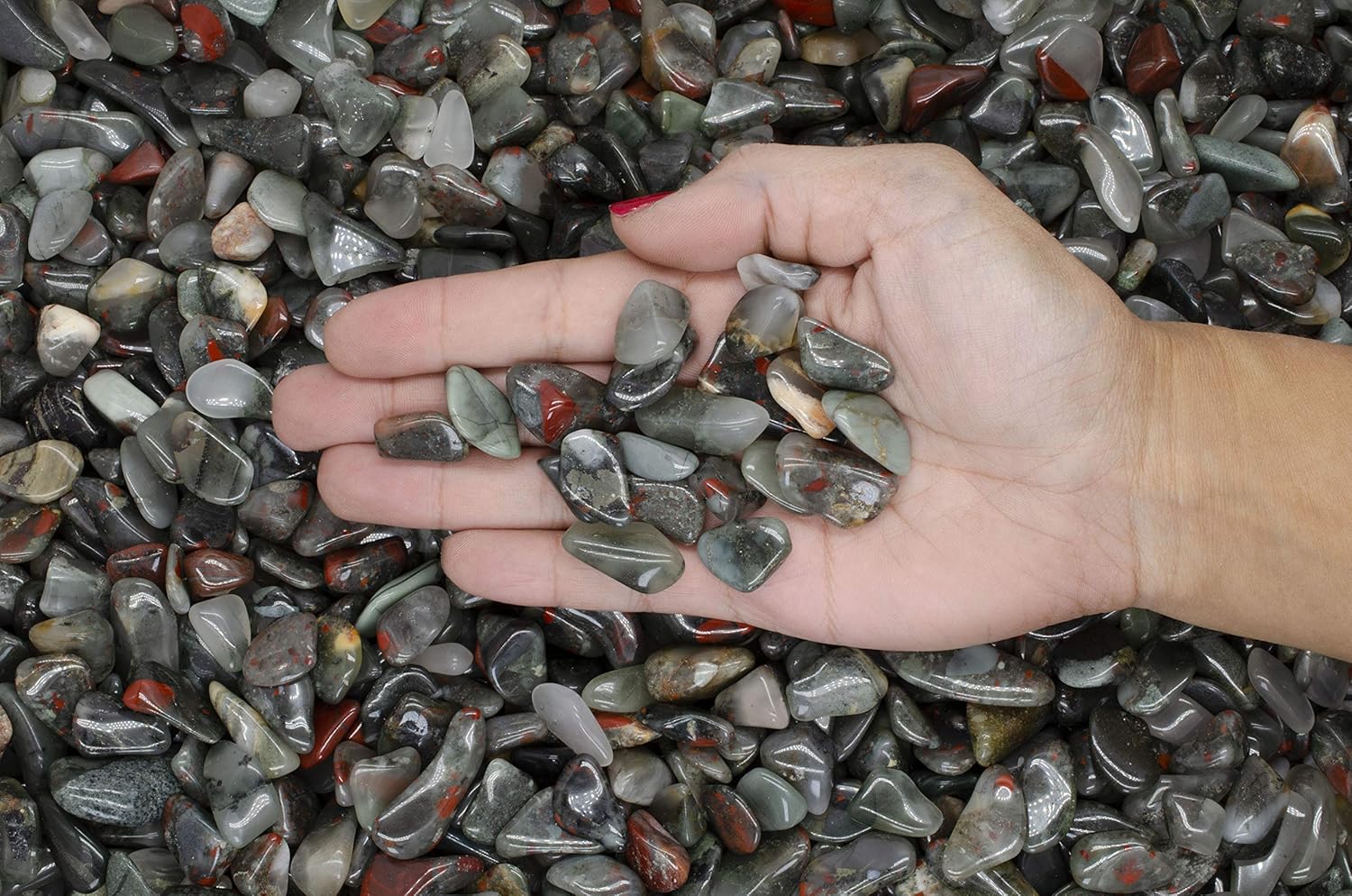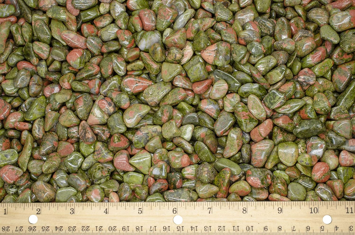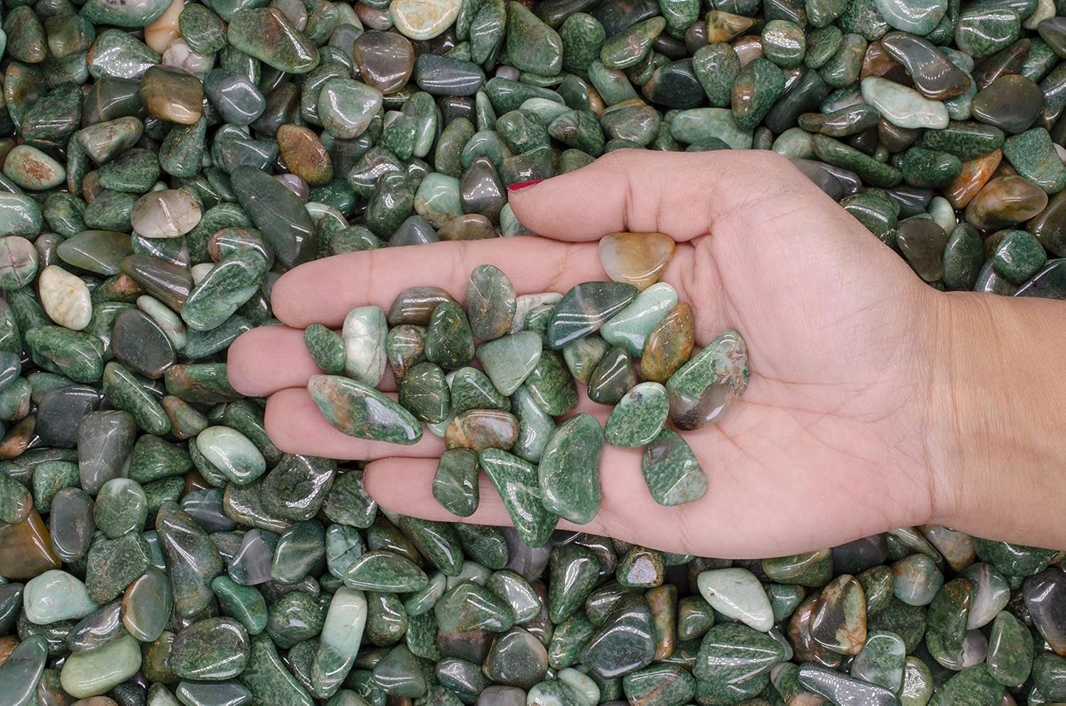 Fantasia is a USA based mining company located in Massillon Ohio providing good old fashioned American quality control to ensure every stone sent is beautiful. Fantasia starts with premium grade African rough stones which are tumbled using Fantasia's proprietary tumbling techniques. This brings out the naturally beautiful colors, patterns, shine, luster and energy in every stone.Some of the many stones used in this mix include: Amethyst, Apricot Quartz, Banded Jasper, Black and Cream Chert, Bloodstone, Blue Chert, Blue Howlite, Blue Tiger Eye, Brecciated Jasper, Carnelian, Chevron Amethyst, Dark Purple Amethyst, Dragon Stone, Epidote, Fine Line Agate, Flower Jasper, Gold Tiger Eye, Green Chalcedony, Green Chert, Grey Botswana Agate, Guinea Fowl, Nguni Jasper, Picture Stone, Rainbow Jasper, Red and White Jasper, Red Carnelian, Red Jasper, Red Lined Agate, Red Tiger Eye, Rose Quartz, Satin Leaf Jasper, Silver Leaf Jasper, Snowflake Epidote, Sodalite, Speartite, Unakite, Unpolished Turquenite, Voegesite, White Howlite, Wine Red Quartz and MORE!Your order will contain multiple pieces with varying stone types, sizes, shapes and patterns as shown in the images which is equal to or greater than the total weight purchased. In most cases the size of each stone is between 0.75" to 1" each, but it is possible to get some stones smaller or larger than these averages. While most stones in this mix are undyed it is possible to receive dyed blue howlite in this mix.VERY IMPORTANT: With all tumbled stones there are some material types which will have imperfections even after being meticulously tumbled due to their natural characteristics. While rare, due to the fragile nature of tumbled stones it is also possible minor chipping may be found on some of the stones received. The number of acceptable imperfections is relative to the material type and the grade being purchased and some minor imperfections should be expected as shown in our images.