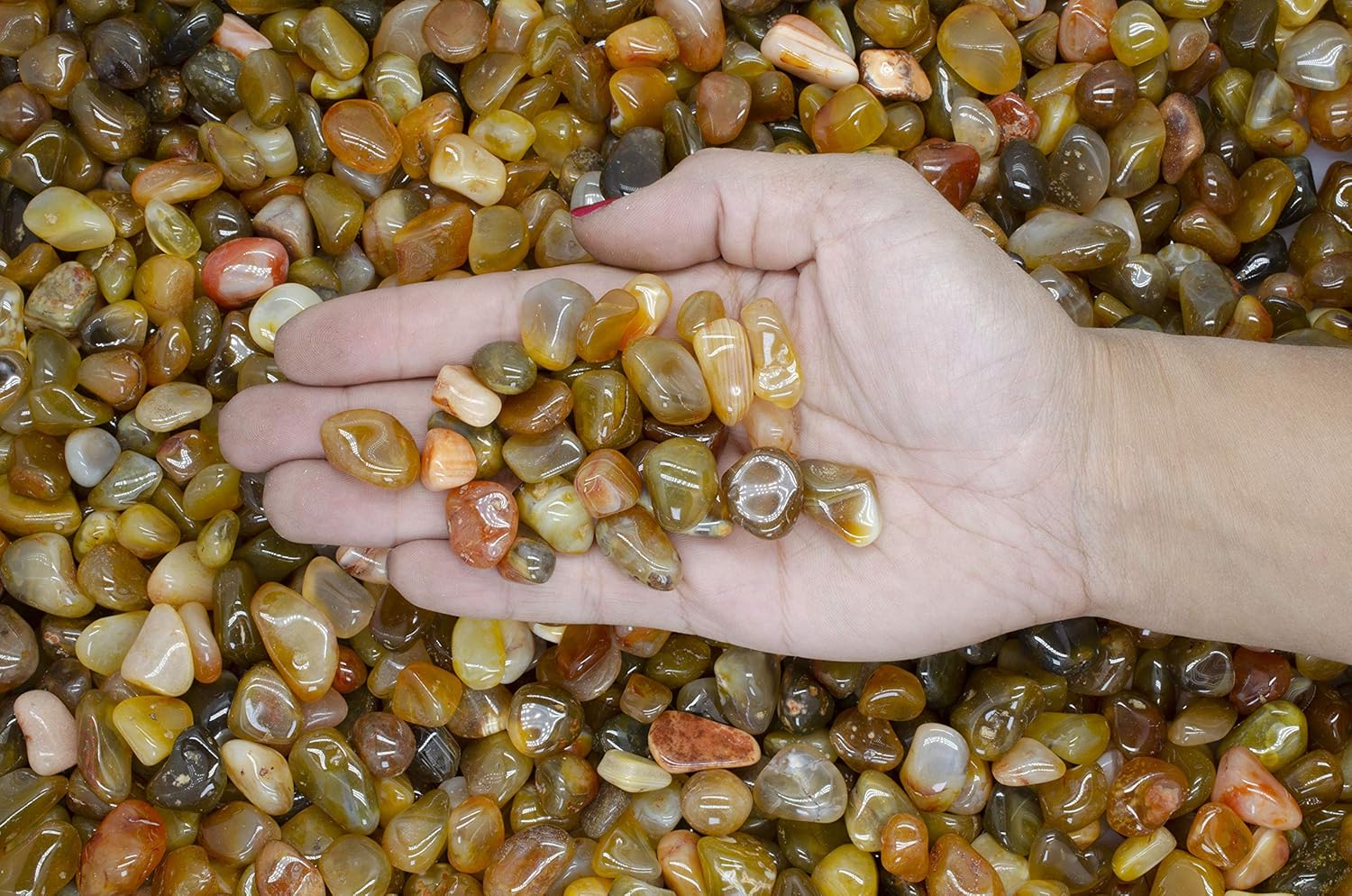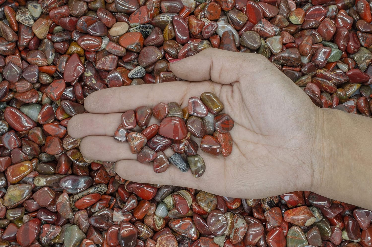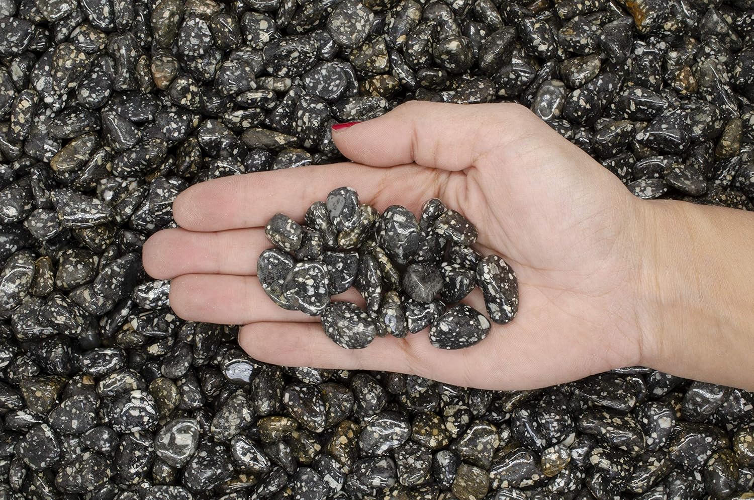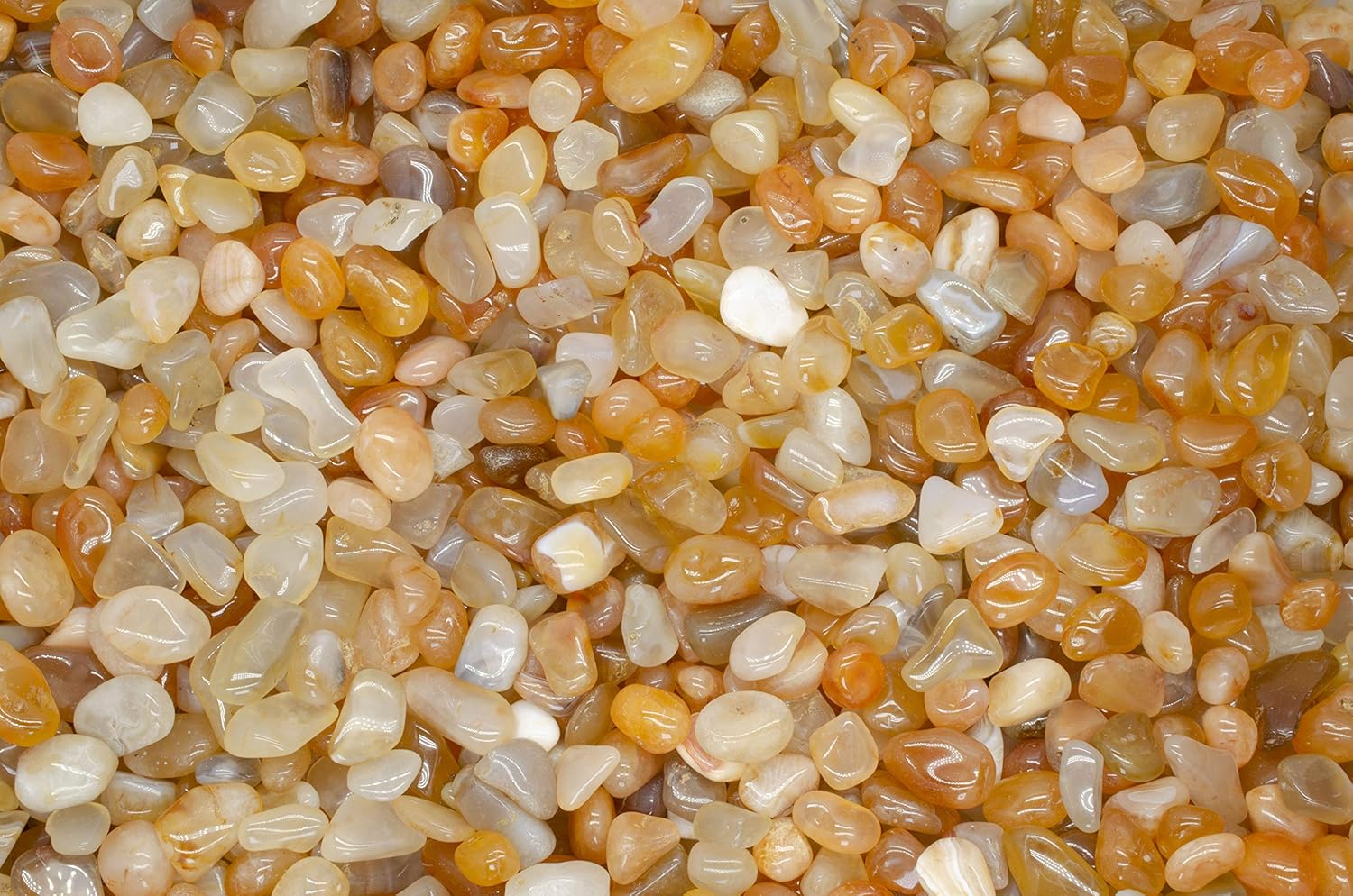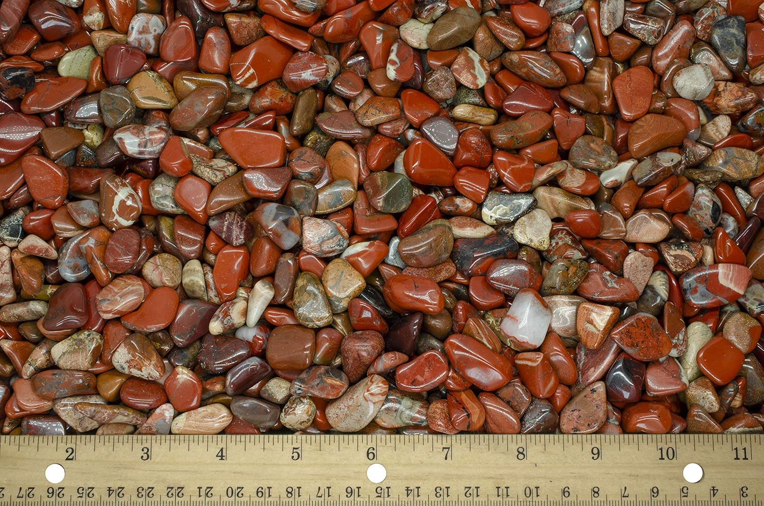 Fantasia is a USA based mining company located in Massillon Ohio providing good old fashioned American quality control to ensure every stone sent is beautiful. Fantasia starts with premium grade African rough stones which are tumbled using Fantasia's proprietary tumbling techniques. This brings out the naturally beautiful colors, patterns, shine, luster and energy in every stone.Some of the many stones used in this mix include: Amethyst, Apricot Quartz, Banded Jasper, Black and Cream Chert, Bloodstone, Blue Chert, Blue Howlite, Blue Tiger Eye, Brecciated Jasper, Carnelian, Chevron Amethyst, Dark Purple Amethyst, Dragon Stone, Epidote, Fine Line Agate, Flower Jasper, Gold Tiger Eye, Green Chalcedony, Green Chert, Grey Botswana Agate, Guinea Fowl, Nguni Jasper, Picture Stone, Rainbow Jasper, Red and White Jasper, Red Carnelian, Red Jasper, Red Lined Agate, Red Tiger Eye, Rose Quartz, Satin Leaf Jasper, Silver Leaf Jasper, Snowflake Epidote, Sodalite, Speartite, Unakite, Unpolished Turquenite, Voegesite, White Howlite, Wine Red Quartz and MORE!Your order will contain multiple pieces with varying stone types, sizes, shapes and patterns as shown in the images which is equal to or greater than the total weight purchased. In most cases the size of each stone is between 0.75" to 1" each, but it is possible to get some stones smaller or larger than these averages. While most stones in this mix are undyed it is possible to receive dyed blue howlite in this mix.VERY IMPORTANT: With all tumbled stones there are some material types which will have imperfections even after being meticulously tumbled due to their natural characteristics. While rare, due to the fragile nature of tumbled stones it is also possible minor chipping may be found on some of the stones received. The number of acceptable imperfections is relative to the material type and the grade being purchased and some minor imperfections should be expected as shown in our images.