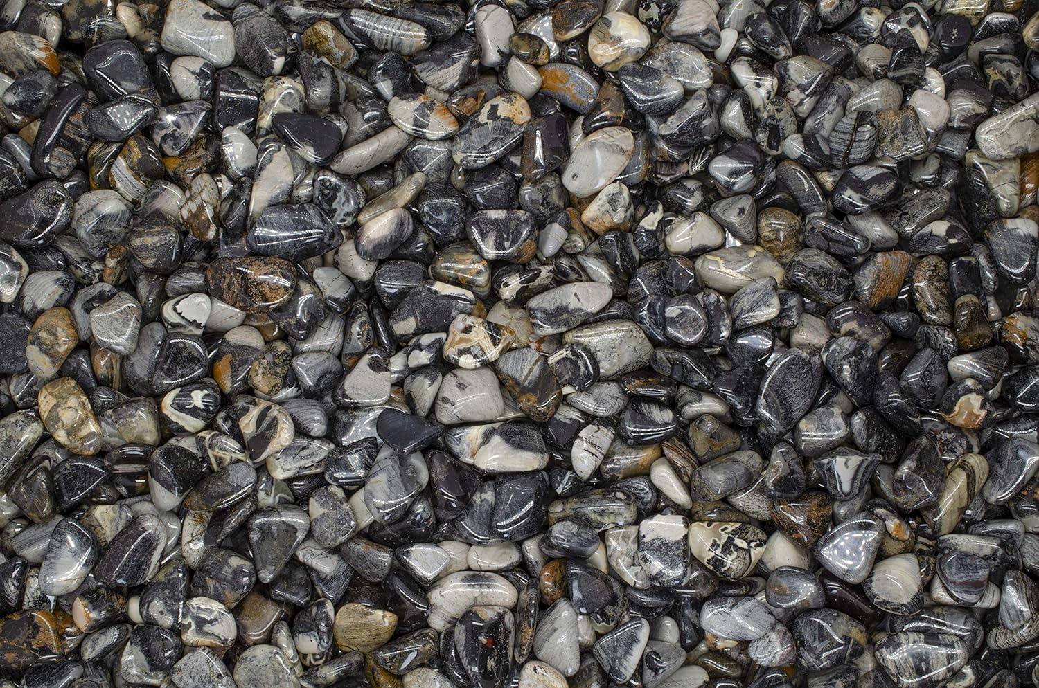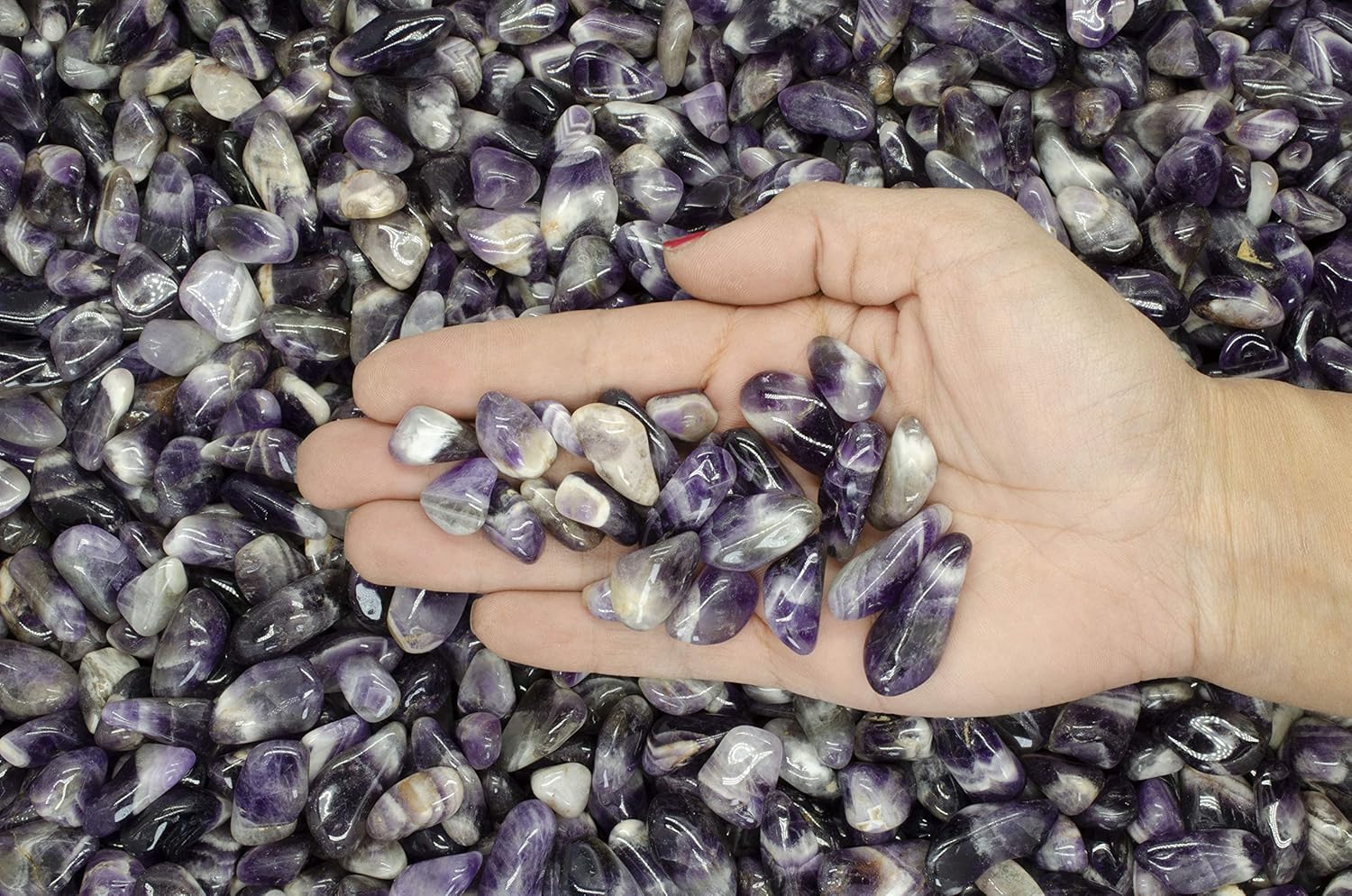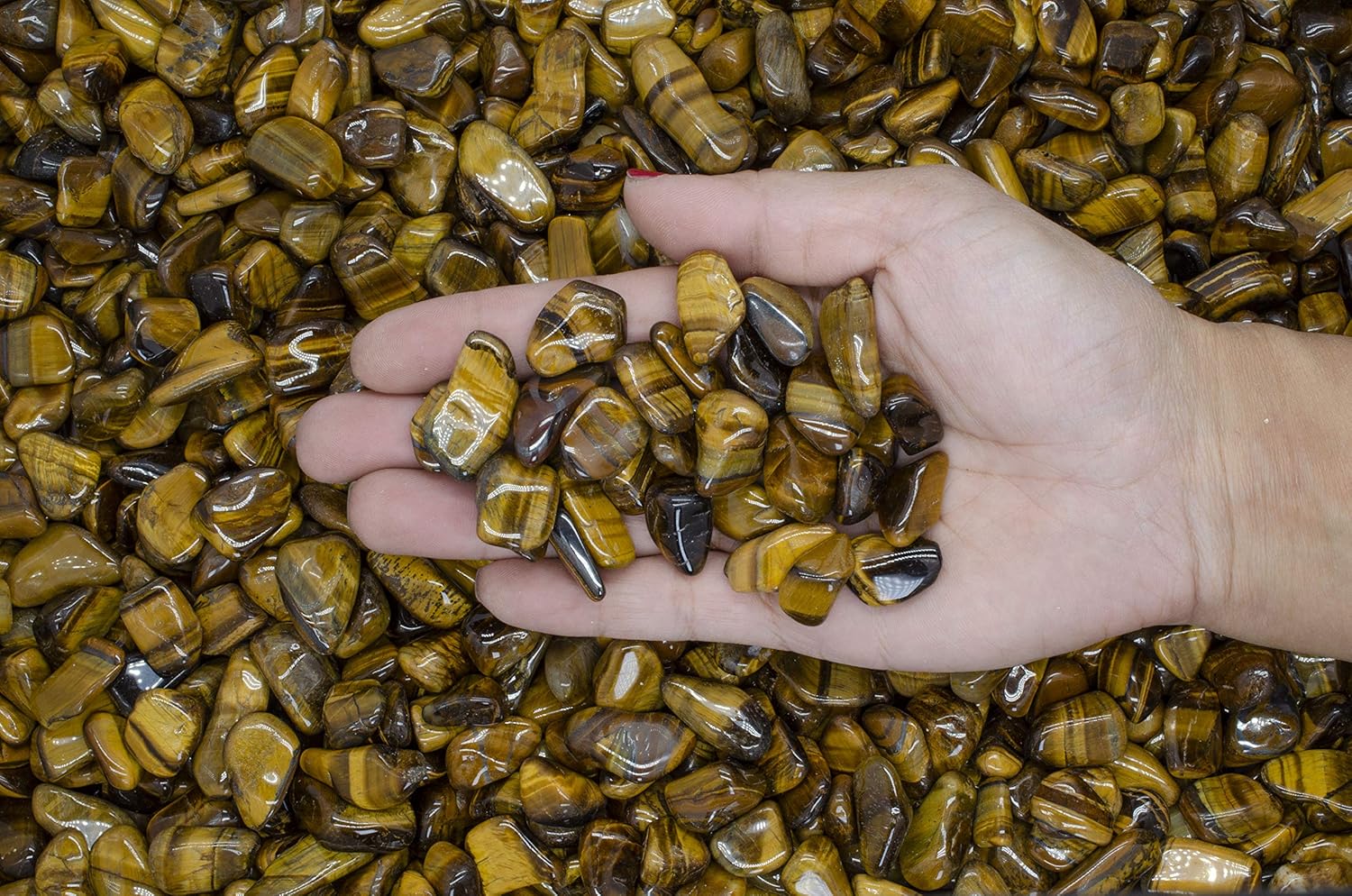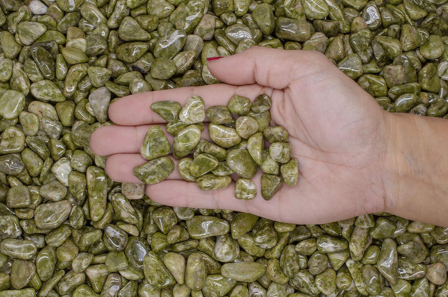 Fantasia is a USA based mining company located in Massillon Ohio providing good old fashioned American quality control to ensure every stone sent is beautiful. Fantasia starts with premium grade African rough stones which are tumbled using Fantasia's proprietary tumbling techniques. This brings out the naturally beautiful colors, patterns, shine, luster and energy in every stone.Some of the many stones used in this mix include: Amethyst, Apricot Quartz, Banded Jasper, Black and Cream Chert, Bloodstone, Blue Chert, Blue Howlite, Blue Tiger Eye, Brecciated Jasper, Carnelian, Chevron Amethyst, Dark Purple Amethyst, Dragon Stone, Epidote, Fine Line Agate, Flower Jasper, Gold Tiger Eye, Green Chalcedony, Green Chert, Grey Botswana Agate, Guinea Fowl, Nguni Jasper, Picture Stone, Rainbow Jasper, Red and White Jasper, Red Carnelian, Red Jasper, Red Lined Agate, Red Tiger Eye, Rose Quartz, Satin Leaf Jasper, Silver Leaf Jasper, Snowflake Epidote, Sodalite, Speartite, Unakite, Unpolished Turquenite, Voegesite, White Howlite, Wine Red Quartz and MORE!Your order will contain multiple pieces with varying stone types, sizes, shapes and patterns as shown in the images which is equal to or greater than the total weight purchased. In most cases the size of each stone is between 0.75" to 1" each, but it is possible to get some stones smaller or larger than these averages. While most stones in this mix are undyed it is possible to receive dyed blue howlite in this mix.VERY IMPORTANT: With all tumbled stones there are some material types which will have imperfections even after being meticulously tumbled due to their natural characteristics. While rare, due to the fragile nature of tumbled stones it is also possible minor chipping may be found on some of the stones received. The number of acceptable imperfections is relative to the material type and the grade being purchased and some minor imperfections should be expected as shown in our images.
