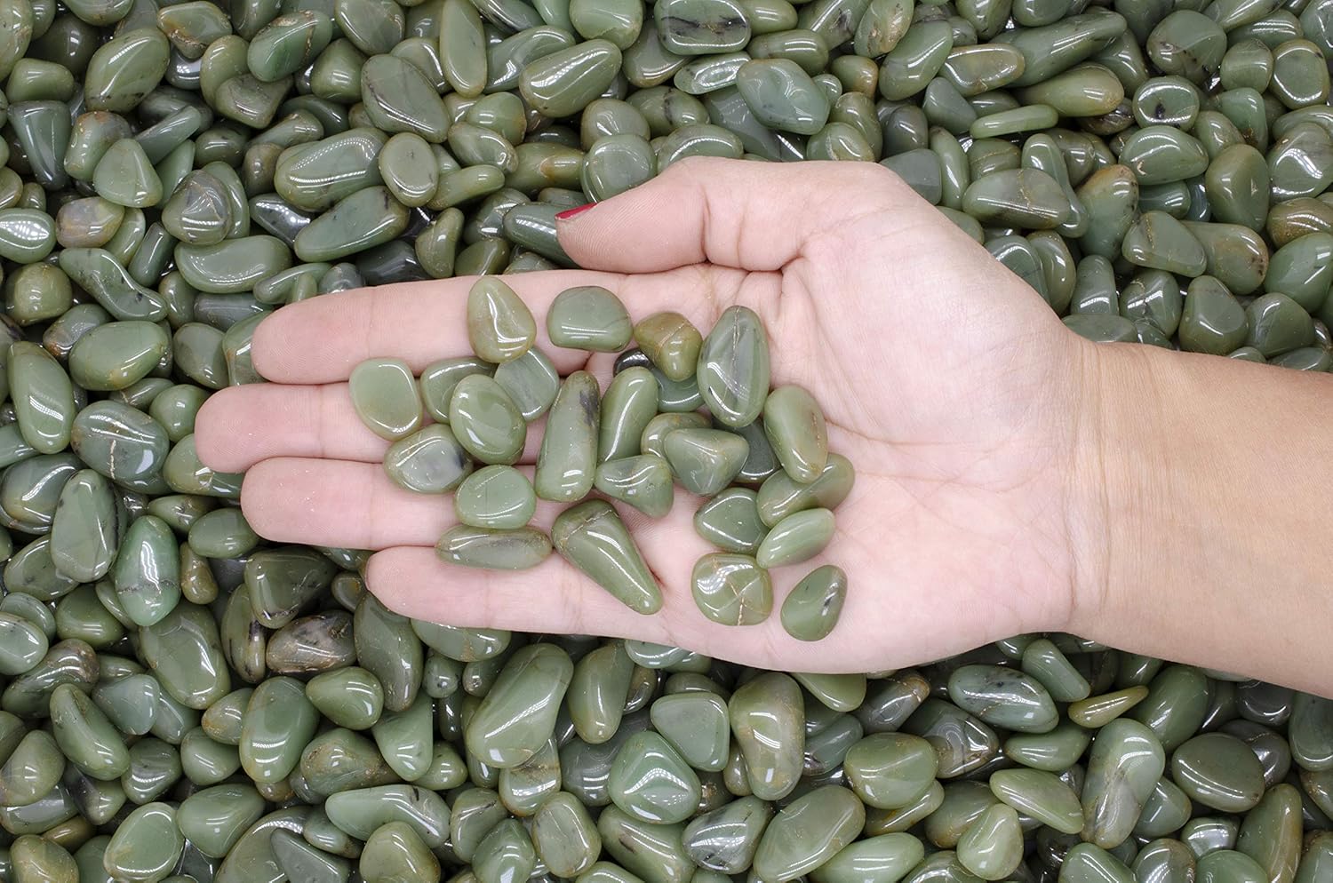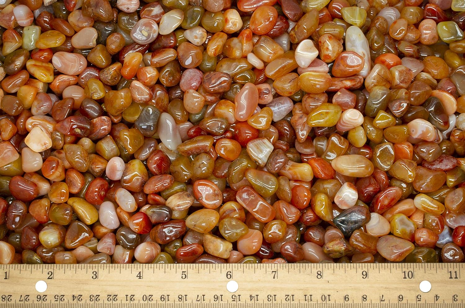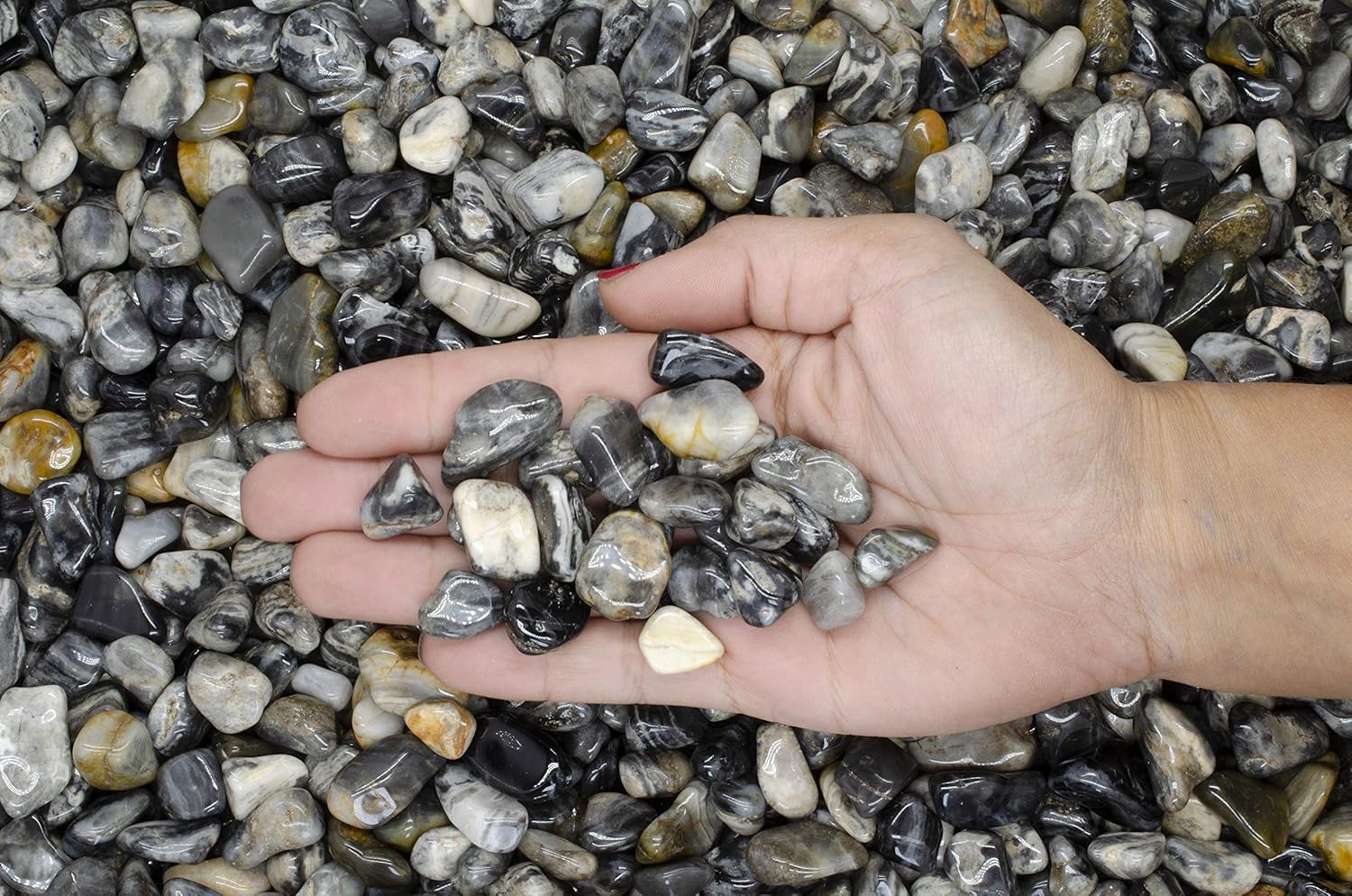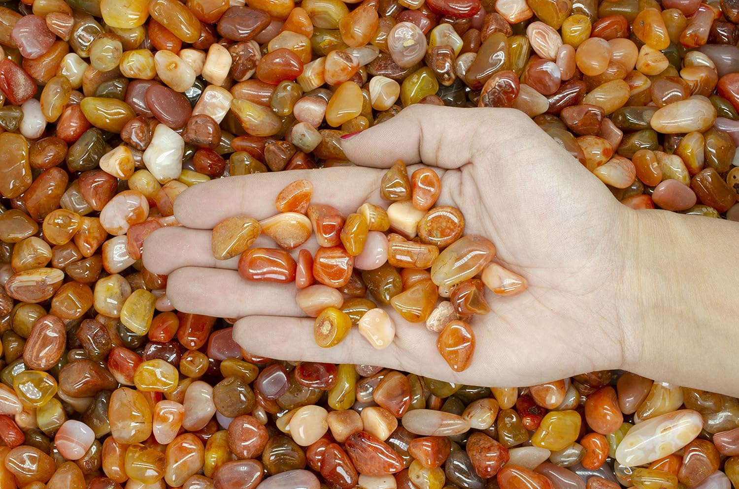 Fantasia is a USA based mining company located in Massillon Ohio providing good old fashioned American quality control to ensure every stone sent is beautiful. Fantasia starts with premium grade African rough stones which are tumbled using Fantasia's proprietary tumbling techniques. This brings out the naturally beautiful colors, patterns, shine, luster and energy in every stone.Some of the many stones used in this mix include: Amethyst, Apricot Quartz, Banded Jasper, Black and Cream Chert, Bloodstone, Blue Chert, Blue Howlite, Blue Tiger Eye, Brecciated Jasper, Carnelian, Chevron Amethyst, Dark Purple Amethyst, Dragon Stone, Epidote, Fine Line Agate, Flower Jasper, Gold Tiger Eye, Green Chalcedony, Green Chert, Grey Botswana Agate, Guinea Fowl, Nguni Jasper, Picture Stone, Rainbow Jasper, Red and White Jasper, Red Carnelian, Red Jasper, Red Lined Agate, Red Tiger Eye, Rose Quartz, Satin Leaf Jasper, Silver Leaf Jasper, Snowflake Epidote, Sodalite, Speartite, Unakite, Unpolished Turquenite, Voegesite, White Howlite, Wine Red Quartz and MORE!Your order will contain multiple pieces with varying stone types, sizes, shapes and patterns as shown in the images which is equal to or greater than the total weight purchased. In most cases the size of each stone is between 0.75" to 1" each, but it is possible to get some stones smaller or larger than these averages. While most stones in this mix are undyed it is possible to receive dyed blue howlite in this mix.VERY IMPORTANT: With all tumbled stones there are some material types which will have imperfections even after being meticulously tumbled due to their natural characteristics. While rare, due to the fragile nature of tumbled stones it is also possible minor chipping may be found on some of the stones received. The number of acceptable imperfections is relative to the material type and the grade being purchased and some minor imperfections should be expected as shown in our images.