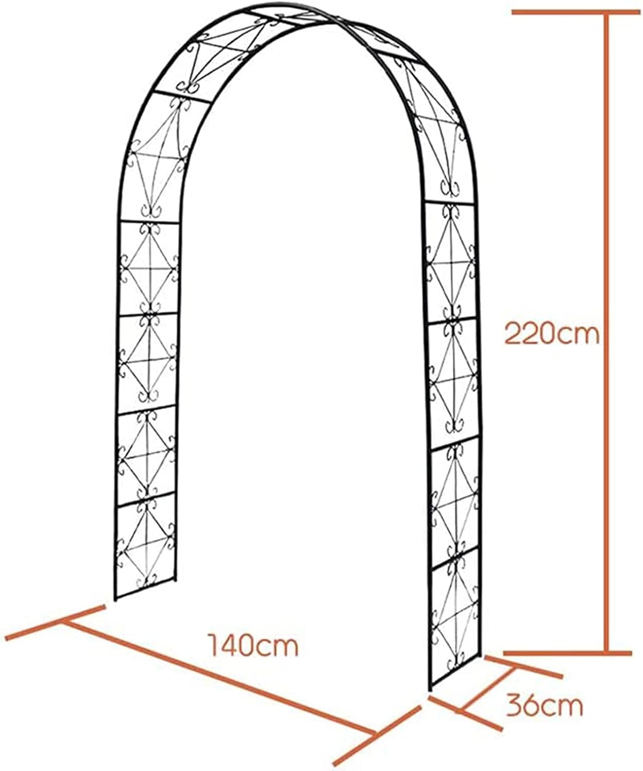 ★★★ Have you ever dreamed of a living and perfect garden? ★ This is a durable garden rose arch (perfectly decorative) The garden arch is very suitable for supporting light climbing plants and grapevines and creates a beautiful entrance for your garden. It can easily turn your garden into a colorful display of various flowers. In addition, the sturdy metal frame can also carry multiple items with hanging fruit such as pumpkins, beans, flower pots, etc. ★ Use heavy duty galvanized pipe material (13mm), high temperature baking paint, environmentally friendly, durable and rustproof ★ Multiple garden arches can form a gazebo to enjoy the natural feeling in the garden ★ Combine balloons, tulle, lights, ribbons, etc. to enhance the festive atmosphere at weddings, ceremonies, birthday parties, etc. ★ Technical indicators -Name: Garden Arch -Color: Black, White. -Material: iron. -Size: 140 cm x 220 cm x 36 cm -Pipe diameter: 13mm -Assembly: Yes -Usage: garden arches, plant stands, outdoor decorative flower stands, etc. -Applicable places: living room, entrance to villa, balcony, garden, sports field, vegetable garden, etc. -Products included 1 * garden arch ★ Note: 1. To make the arch stronger on cement roads, potted plants can be placed on the base. 2. Due to the light and screen difference, the color of this item may be slightly different from the picture. 3. Due to manual measurement, please allow 1-3cm difference. 4. If you have any questions, please contact us. We will answer your questions within 48 hours.