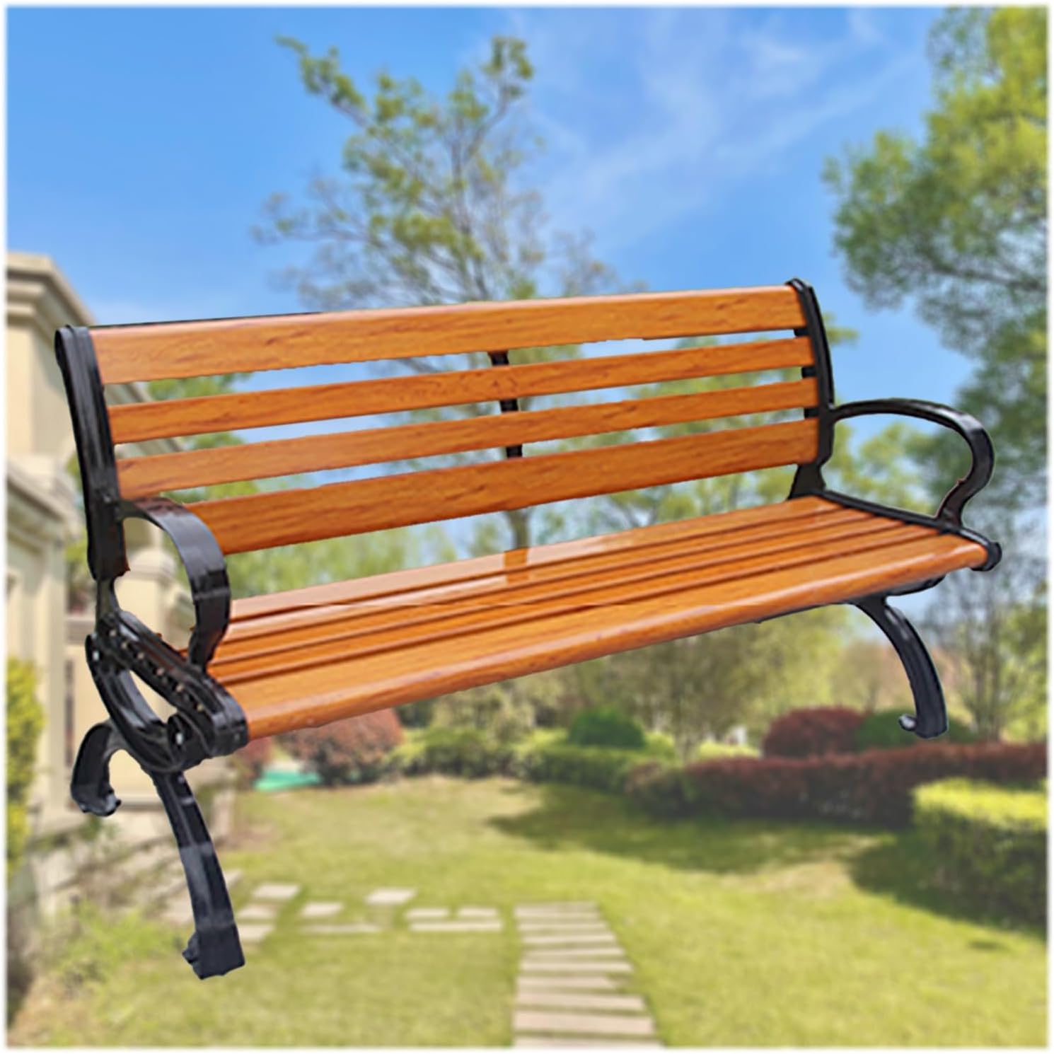 Park Bench:Transform your outdoor space with our stylish and functional Outdoor Garden Bench, designed for comfort and versatility. Perfectly suited for gardens, patios, terraces, balconies, parks, and other outdoor areas, this bench provides an inviting spot for relaxation, conversation, or simply enjoying the view. **Product Features:** - **Durable Construction:** Crafted from high-quality cast aluminum and 3.3cm thick anti-corrosion wood, this garden bench is both sturdy and weather-resistant, ensuring it withstands the elements while providing long-lasting enjoyment. - **Comfortable Seating:** The smooth seat surface invites you to sit back and unwind, making it an ideal choice for family gatherings, quiet moments with a book, or friendly chats with neighbors. - **Easy Assembly and Maintenance:** Designed for hassle-free installation, this bench is easy to put together and maintain. Cleaning is a breeze, and its waterproof and moisture-proof features ensure it remains in pristine condition. - **Versatile Design:** With a modern aesthetic available in amber yellow, maroon, date red, and gold, this bench complements any outdoor decor. Its elegant style enhances public spaces such as parks, city streets, and squares, making it a perfect addition to your landscape. **Specifications:** - **Weight Capacity:** 360kg, accommodating multiple users with ease. - **Application:** Ideal for parks, gardens, scenic spots, and various other outdoor settings. **Package Includes:** 1x Outdoor Garden Bench **Important Notes:** - Please allow for slight measurement variations of 1-3cm due to manual measuring. - Color discrepancies may occur due to different screen displays. Experience the perfect blend of style and comfort with our Outdoor Garden Bench. For any inquiries, feel free to reach out via email, and our dedicated customer service team will be happy to assist you!