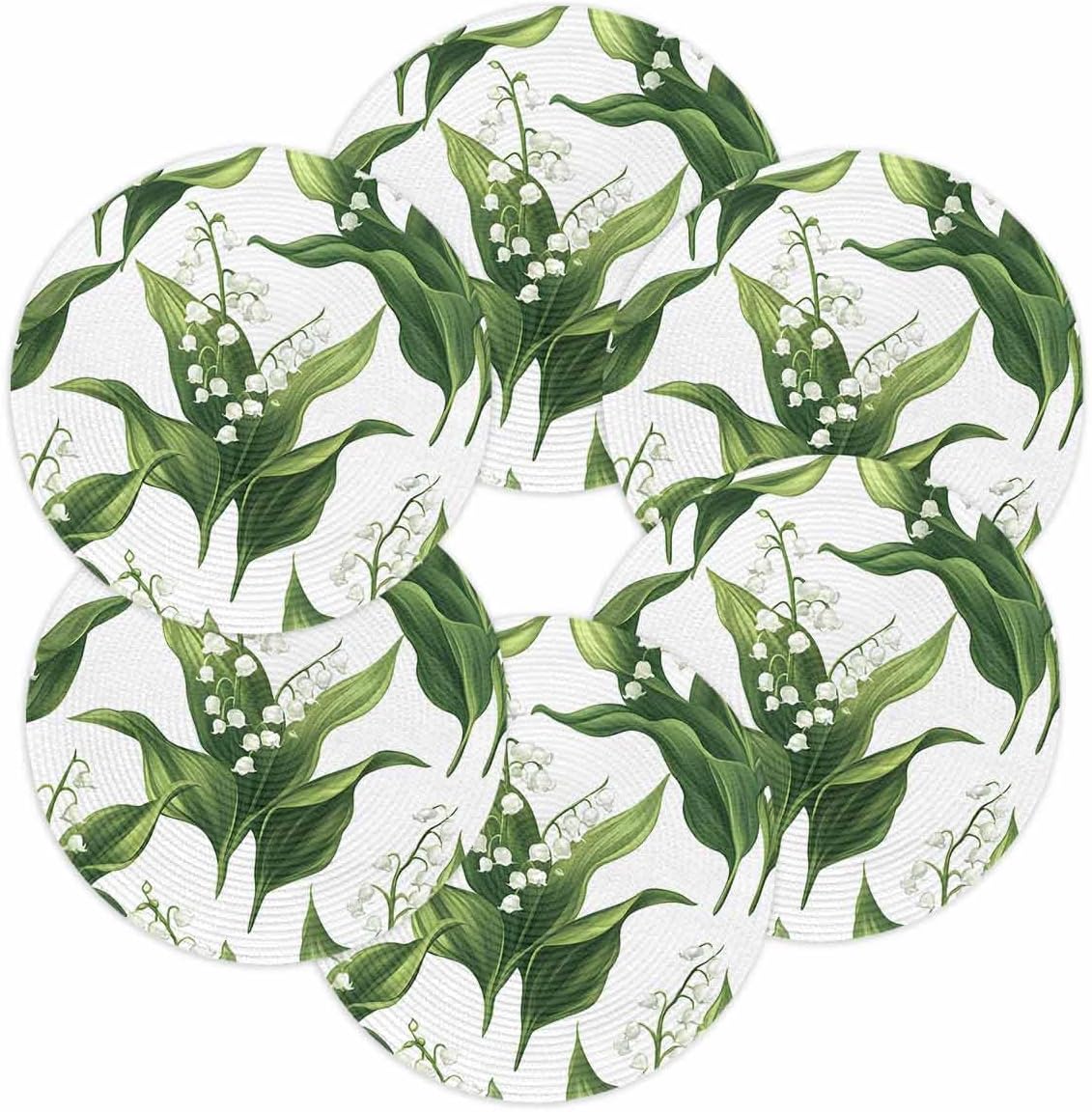 Round Woven Placemats for Indoor Outdoor Dining Table DecorGive an elegant decor touch to your home, and add an natural art aesthetic atmosphere.【Product Description】Package: Placemats Set of 2/4/6/8 PCSSize: Diameter 15 InchMaterial:Eco Friendly PolypropyleneMatches delicately and creates a unique lifestyle for your dining table, kitchen, garden, party, banquet, hotel, diner, receptions, cafe, bar, picnic, BBQ, patio, any outdoor and indoor use.【Multiple Design Occasion】Adopting advanced digital printing technology, bright colors, and clear images, sturdy weave, overall elegant and beautiful.Our place mats come in a variety of vibrant colors patterns full of natural aesthetic feeling for you to decorate your home.Our placemats set are reusable, reusable, and exquisite. Great choice as a considerate and delicate gift for family members, couples, friends, and roommates.The high end placemats look elegant and stylish, could be used for cups, plates, some tableware, cooking pots, potted plants etc, to meet your different needs. 【Warm Tips】Wipe clean with damp sponge or cloth. Both machine and hand washable with gentle cycle and lay flat to dry, no bleach, iron on low heat if required. The colors may have slight differences due to different screens.Due to the official package restrictions, placemats rolled up in the box, we suggest put some heavy things on the mats after unboxing, the crease will disappear and it will be flat.【Special Note】How to make the placemats flat?Unboxing → Crease the back → Turn over the placemats opposite → Make the front side up → Put heavy things on it → After a while, they will be flat