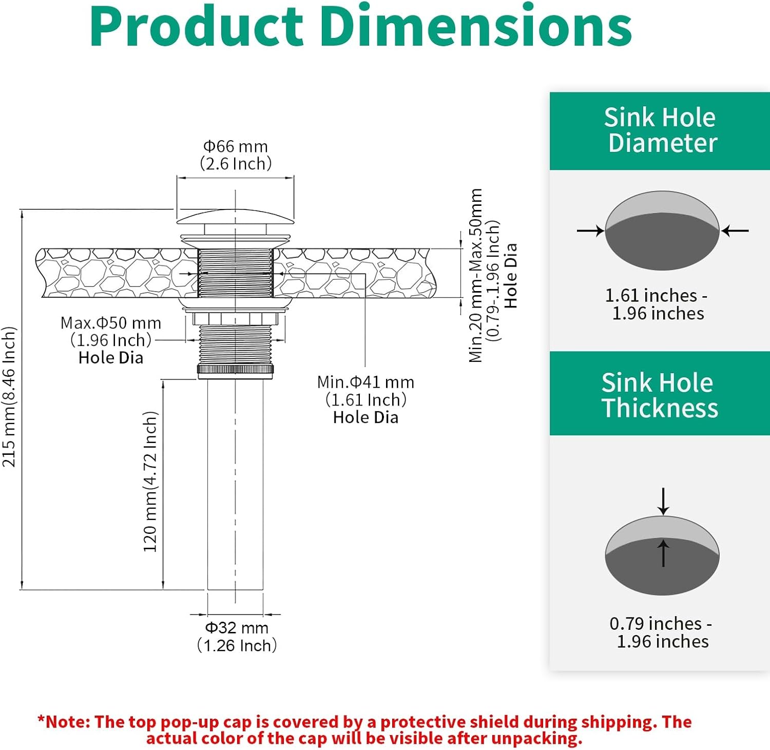 • 【Leak-proof Design】: This push button sink drain is equipped with two thickened silicone gaskets and a brass locking nut, which can ensure a tight fit between the drain and the sink. Moreover, the silicone gasket has the characteristics of resistant to oxidation and wear, which can effectively preventing water leakage and thus keeping the bottom of the sink dry.