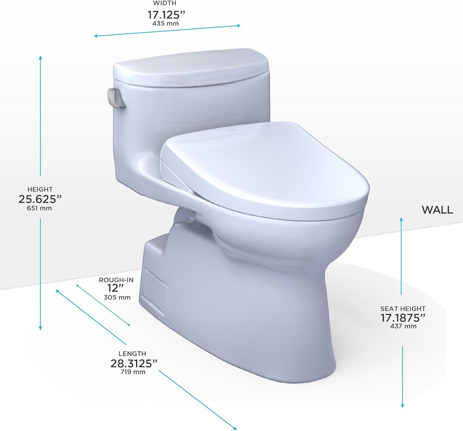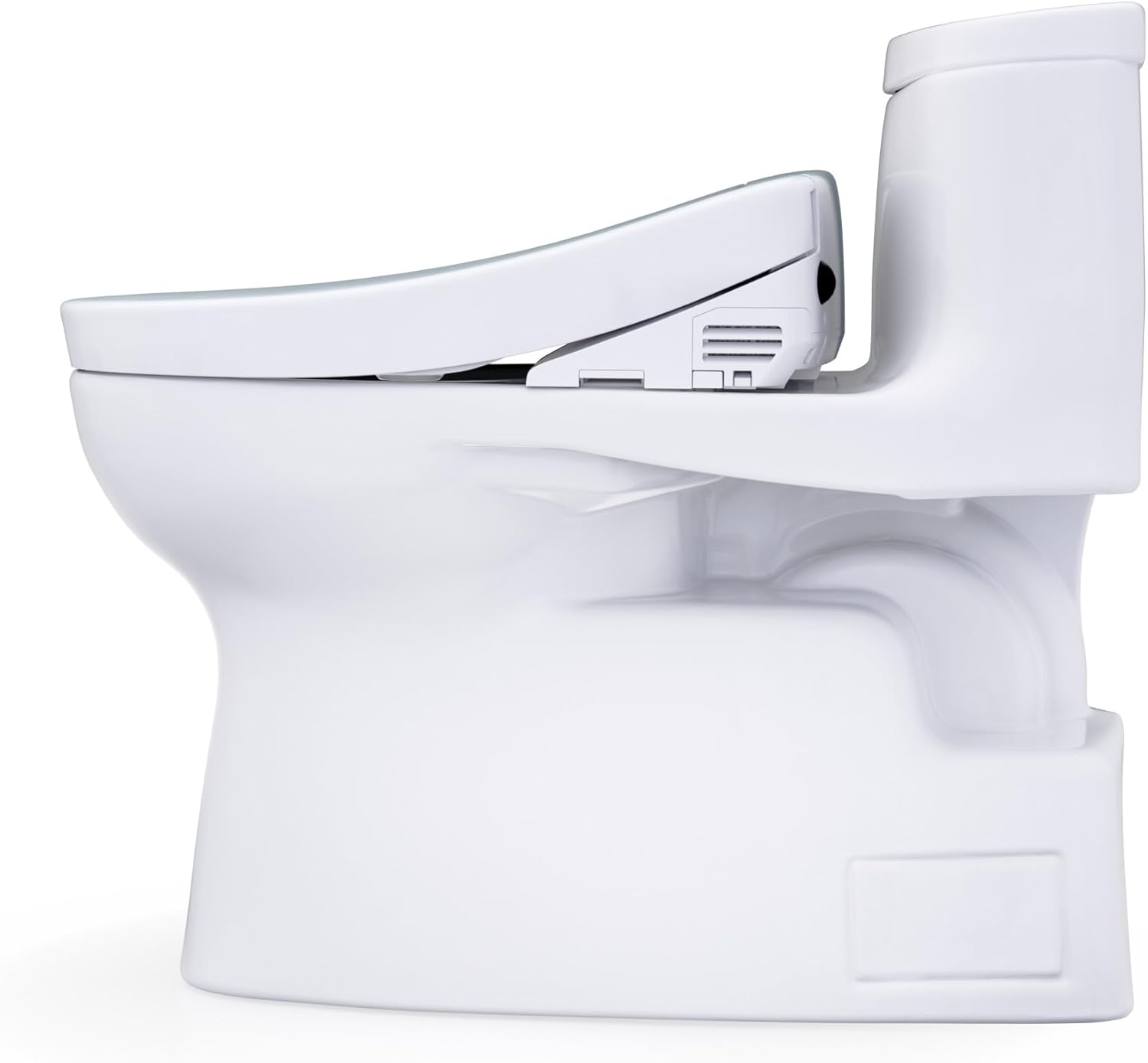 The TOTO T40 WASHLET+® Carolina II One-Piece Elongated 1.28 GPF Toilet and WASHLET® S5 Bidet Seat is designed to conceal the WASHLET power cord and water supply hose for a seamless installation. Part of the newly redesigned S series, the WASHLET S5 features a built in night light, a soft rear spray, rear cleanse, and front cleanse with the option of an oscillating or pulsating stream. The temperature and pressure of the water are adjustable, each with five settings. The controls are located on a slim, wireless remote. PREMIST® wets the surface of the toilet bowl, aiding in the removal of waste and resulting in a better clean. The S5 model utilizes TOTO's EWATER+® system when the wand self-cleans. EWATER+ transforms the water into a safe and powerful compound, creating peace of mind by cleaning the inside and outside of the wand before and after every use. The WASHLET features a heated SoftClose® seat with five temperature settings. The WASHLET features an air deodorizer and a warm air dryer with five temperature settings. The Carolina II features TOTO’s TORNADO FLUSH®, a hole-free rim design with dual-nozzles that creates a centrifugal washing action that assists in rinsing the bowl more efficiently. This version of the TOTO Carolina II includes CEFIONTECT, a layer of ceramic glaze that minimizes waste from sticking to ceramic surfaces. This feature, coupled with the WASHLET PREMIST® and TORNADO FLUSH®, assists to reduce the frequency of toilet cleanings, minimizing the usage of water, harsh chemicals, and time required for cleaning. The TOTO Carolina II is designed in TOTO’s Universal Height, which allows for a more comfortable seat position across a wide range of users. This WASHLET+® includes the WASHLET with water supply adapter, Carolina II bowl and tank set with hardware, and toilet bolt caps. Compatible with T40 WASHLET+ electronic bidet seat and toilet bowl components only. Additional items needed for installation must be purchased separately: wax ring, toilet mounting bolts, and toilet water supply lines.