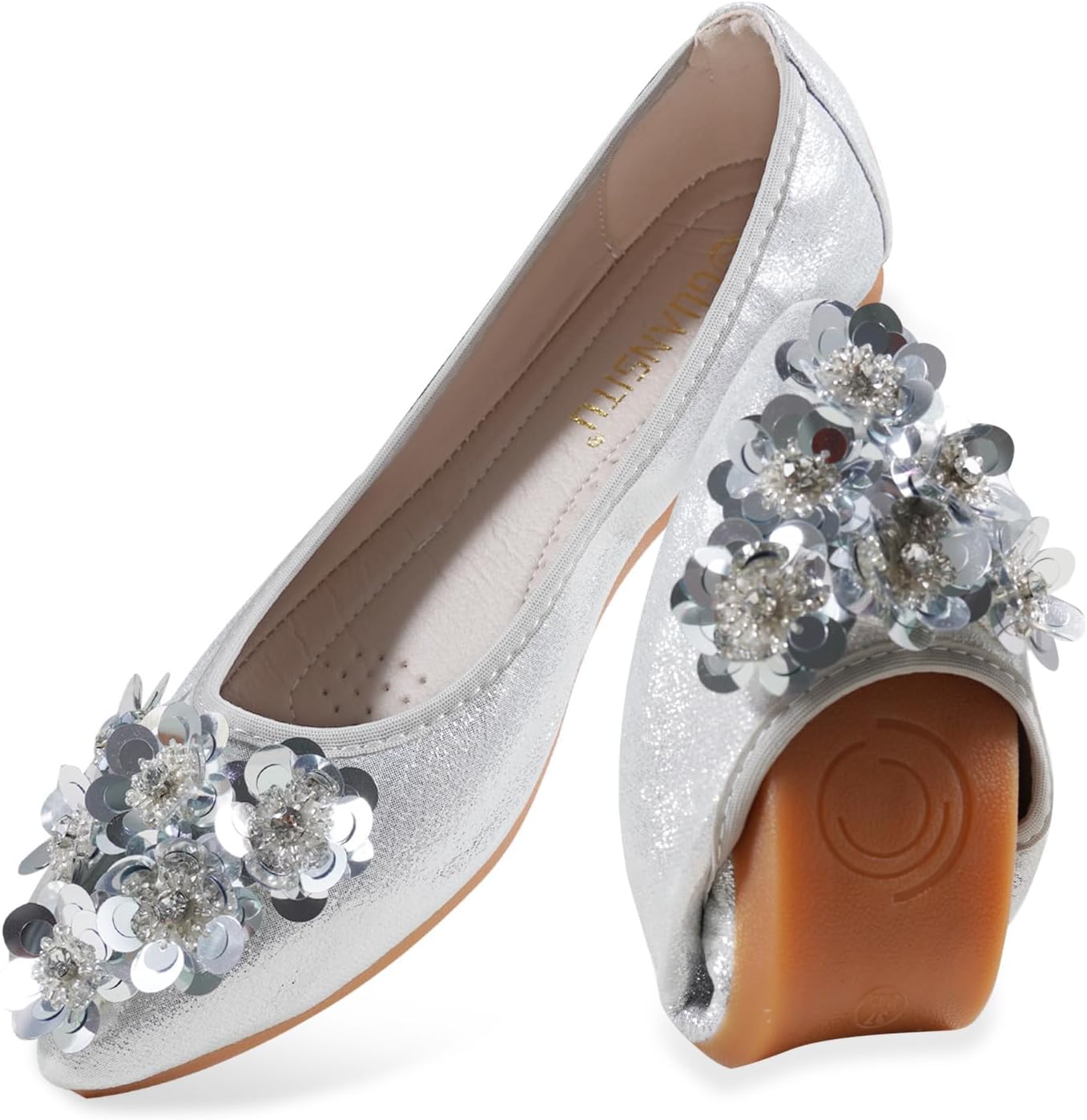 Features: Brand: YOUNIFIZ Item Type: Ballet Flats Style: Casual, Dressy, Fashion, Cute Toe Shape: Pointed Toe Closure Type: Slip-on Colour: Black, Gold, Silver Heel Type: Women Foldable Ballet Flats Decorations: Cute Flower Ballet Flats Package: 1 (pair) x Flats SIZE TIP: Please choose the size according to your foot length. US 5.5=Asia 36=Heel to Toe(cm) 23 US 6=Asia 37=Heel to Toe(cm) 23.5 US 7=Asia 38=Heel to Toe(cm) 24 US 8=Asia 39=Heel to Toe(cm) 24.5 US 8.5=Asia 40=Heel to Toe(cm) 25 US 9=Asia 41=Heel to Toe(cm) 25.5 US 9.5=Asia 42=Heel to Toe(cm) 26 US 10=Asia 43=Heel to Toe(cm) 26.5 US 11=Asia 44=Heel to Toe(cm) 27 US 12=Asia 45=Heel to Toe(cm) 27.5 Please choose the size according to your foot length.if you do not know your size,please contact us for your size.