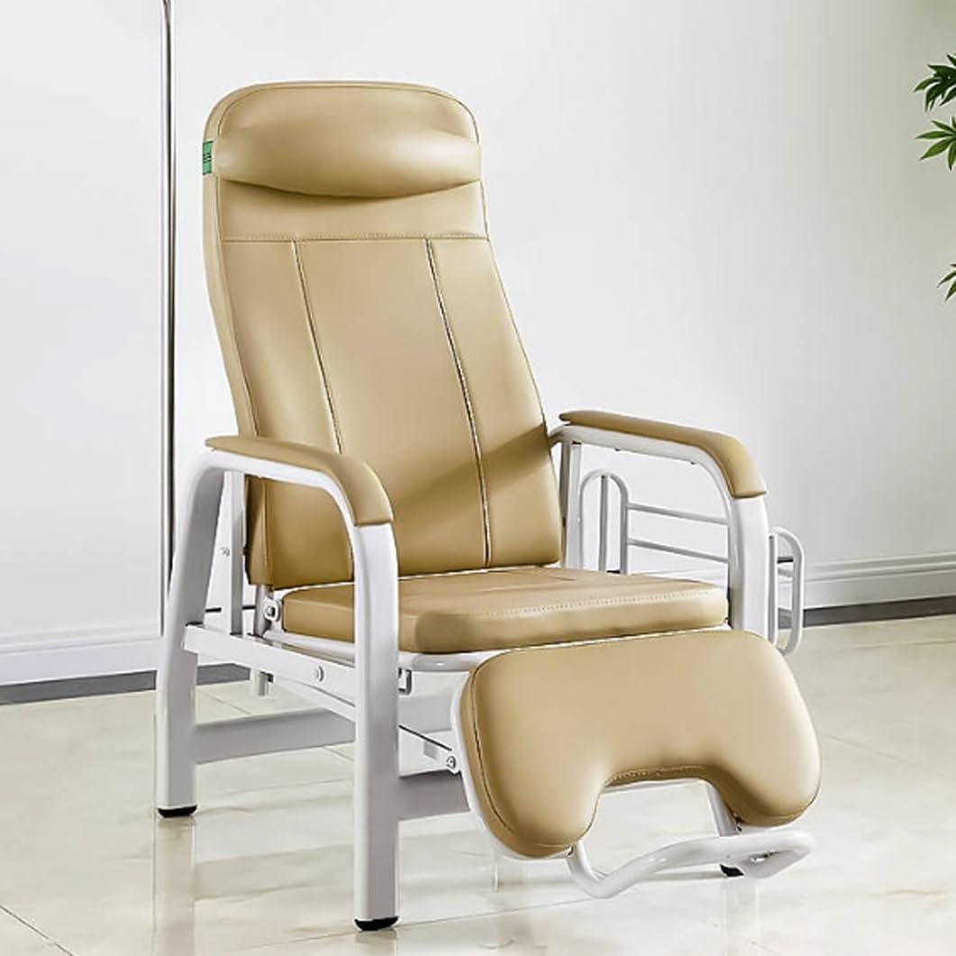 Welcome to YVYKFZD store:- The reclining chair is designed with a detachable IV rod, which provides adjustment left/right placement to adapt to any infusion situation. A storage basket is set next to the chair to place some personal belongings, water cups, etc- The reception chair feet are equipped with non-slip pads to effectively prevent the chair from sliding, protect the floor from scratches, and increase safety during use* Product Parameters:- Product Name: Waiting Room Chairs, Reception Chairs, Guest Chairs, Lobby Chair, Infusion Chair, Waiting Room Sofa, Reclining Chair, Phlebotomy Chair- Color: Sky blue, green, light yellow- Material: Metal + leather + sponge- Product Size: (LxWxH) 73x73x115cm/28.7x28.7x45.2in- Features: Space-saving, versatile, stylish design, light weight* Package Includes:- 1 x Waiting area chairs* Note:1. Simple assembly is required after receiving2. Please check the size before buying. Due to manual measurement, an error of 0-3cm will occur. Hope for understanding3. Please note that due to different monitors, there may be slight color difference, please understand